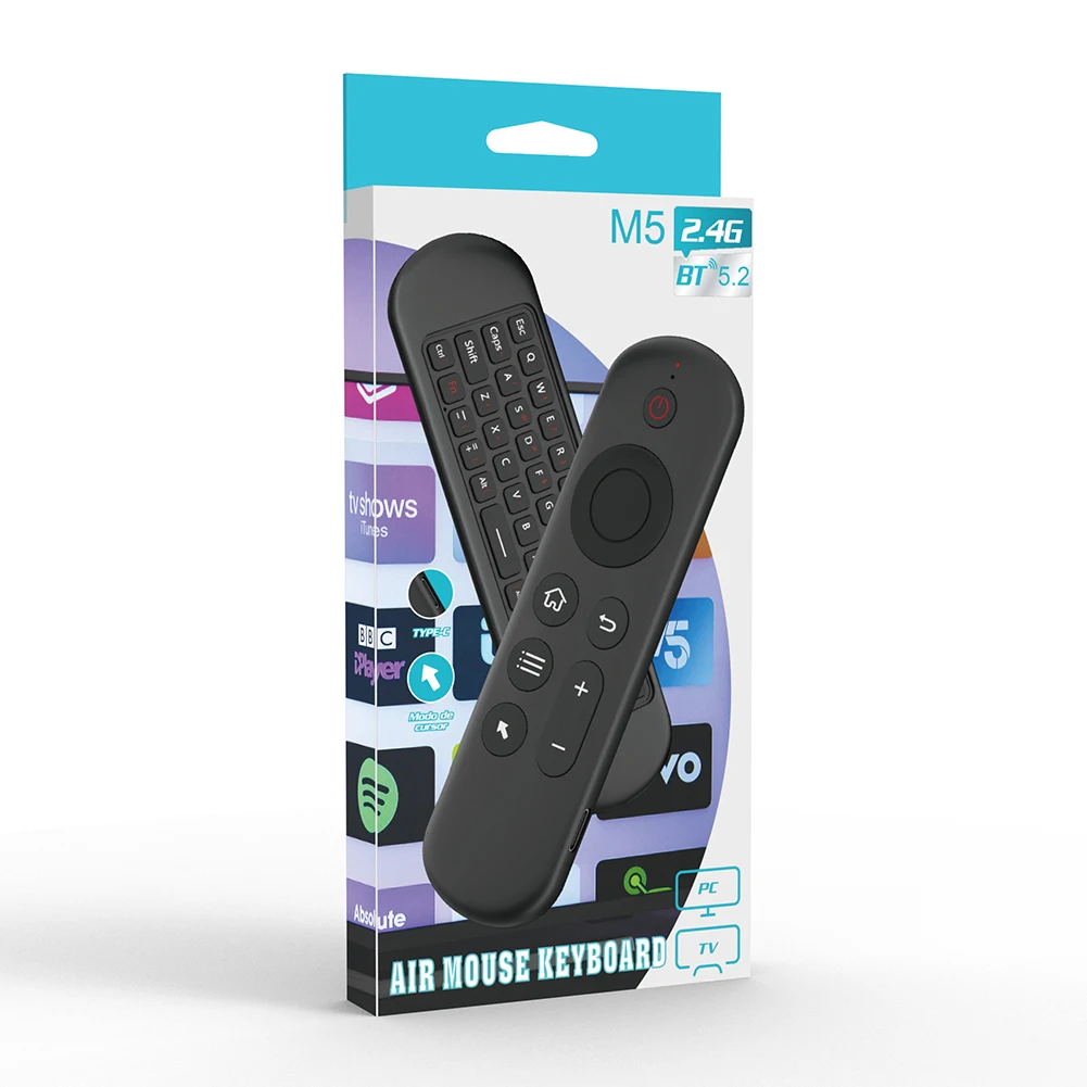 Descripción: Transforma tu experiencia de entretenimiento con el Mando a Distancia M5 Air Mouse, un dispositivo multifuncional que combina las funciones de un control remoto, mini teclado inalámbrico y ratón volador. Ideal para Android TV Box, PC, Smart TV y más, este periférico es el compañero perfecto para una navegación intuitiva y sin esfuerzo.