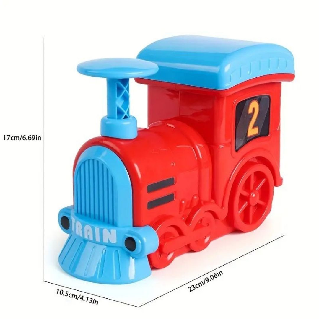 Diversión interactiva: el tren avanza y lanza discos, sorprendiendo y motivando al juego activo.